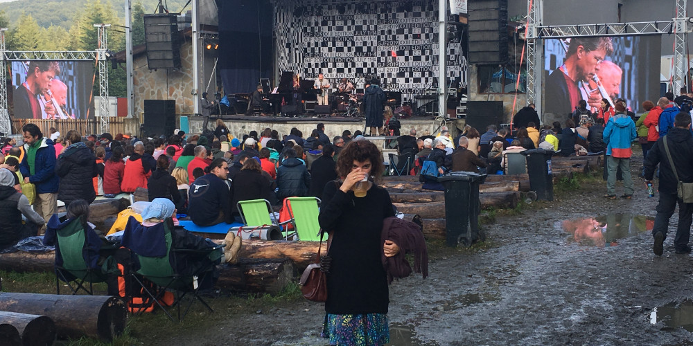 Apparemment, ils sont habitués et même s’il pleut des cordes comme ce sera le cas pendant presque tout le festival, ils restent plantés là sans moufter! Un public étonnamment déterminé pour écouter les artistes programmés pendant ces quatre jours. Pour ma part, je n’ai ni imperméable, ni parapluie, ni bottes de pluie, ni chaise, ni couverture! Rien de tout ça… J’envoie un message illico à Marius “Prends des couvertures, pulls, chaussettes car c’est vraiment la galère… euh la montagne ici!”