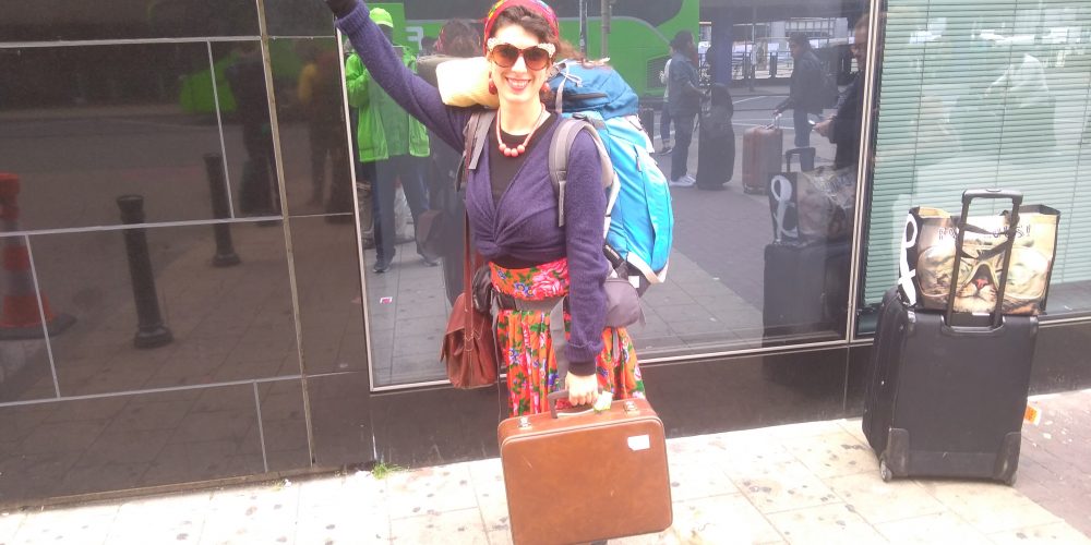 Le gars lâche pas l’affaire pour le supplément. « Oh! thank you so much ! » Un gars à la casquette posée sur une chevelure bouclée me file 3 euros pour payer le supplément. Adorable! Et l’autre bagage – ma tente – on fait comment? Ça passe avec un sourire. Ouf! Je ferai des coucous pendant tout le trajet au sauveur de la fille aux trois sacs. L’air de dire non verbalement « danke schön« .