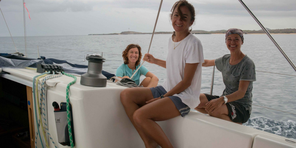 La route nous l’avons faite comme dans un rêve, vent constant, du 15 noeuds maximum, de travers, houle modérée à forte, un petit grain histoire de ne pas perdre l’habitude d’être mouillées, bonnes pêches pour remplir nos assiettes. Que demander de plus ?