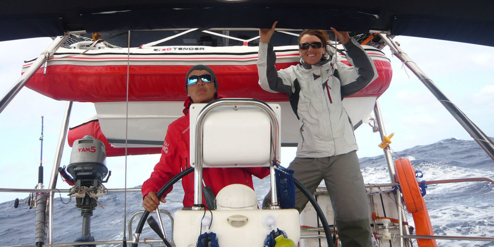 Les heures sont longues à veiller l’immensité. Cette fois en convoi, nous prenons garde à ne jamais laisser plus de 20 milles entre nous, portée maximale de notre radio VHF. La nuit est coupée par un appel toutes les 2 heures. Chacun confirme sa position, donne l’état de la mer, rajoute quelques paroles d’enregistrement, s’inquiète de l’état de forme des équipages. La fatigue est si lourde que rien ne réveille celles qui dorment sauf l’alerte, le besoin d’être toutes sur le pont, parce que le vent à forci qu’il faut réduire la voilure, qu’on va trop vite au risque de perdre les autres, de prendre trop d’avance. On ne freine pas à la voile, on ralentit au mieux, mais Shakespeare est léger et fuse sur les flots, de fait la pression du vent accentue la gite. Et on recommence, le jour, la nuit, quatre heures de veille, quatre heures de sommeil. Réglé comme du papier à musique que l’on n’écoute plus ou si peu, concentrées sur la tache à accomplir, le passage à réussir.