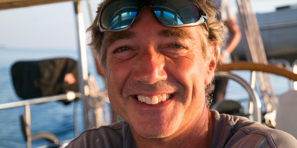 Du haut de son mètre quatre-vingt-dix, un éternel sourire d’adolescent accroché aux lèvres, l’oeil bleu océan, il se meut en père tranquille sur les mers. Son crédo: rire de tout et ne pas se prendre au sérieux. Il y parvient sans difficulté. Lorsqu’on l’interroge, il est affirmatif : « Je n’ai pas rencontré un seul navigateur solitaire qui le soit par choix délibéré« . Et nous avons fait irruption dans sa vie, quatre femmes d’un coup, ça change la perspective. De mouillages en mouillages, l’air de rien, nous avons passé trois mois ensemble. Son français ne s’est guère amélioré au contraire de notre anglais.