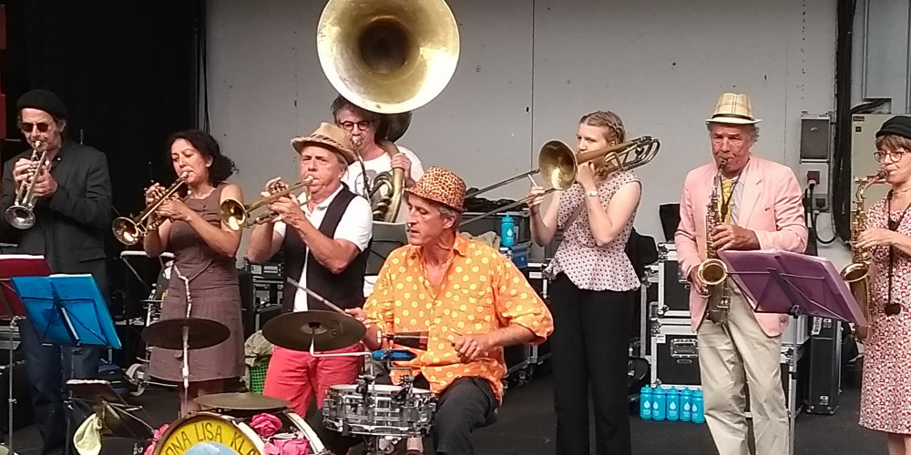 Puis un groupe de musiciens se mit à jouer ; on m’expliqua que cette fanfare de rue, connue sous le nom de Mona Lisa Klaxon — décidément nous étions bien ancrés dans les années *** — tournait depuis environ trente ans dans Rouen, et bien évidemment, pour assurer une telle longévité, ses musiciens tournent aussi, mais nécessairement autour d’un noyau dur. Ils jouaient avec bonne humeur et facétie et aussi – cela s’entendait vite – bien des répétitions derrière eux.