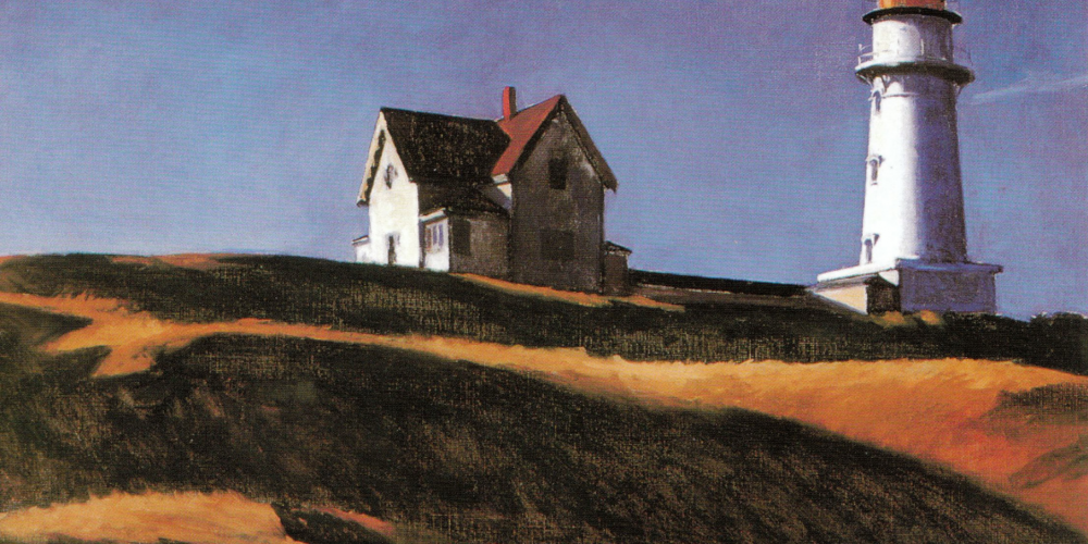Une fenêtre s’ouvre dans ma tête: Le soleil décline, il y a un phare, une maison solitaire, des herbes sauvages allant du vert au fauve, avec des ombres mordorées. Du vent. Je suis dans un tableau d’Edward Hopper, qui peignait ici, à Cape cod, au début du XXème siècle, la mer, les phares, des maisons solitaires, des silhouettes contemplant le ciel au pied duquel se couche le soleil. Tout cela est très familier.