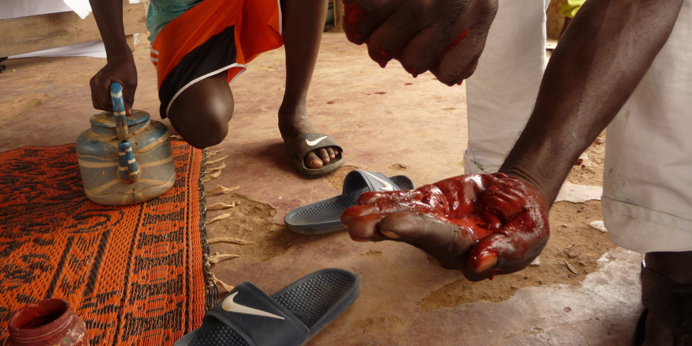 Levés tôt pour affronter la chaleur du Nord, nous louons les services d’un guide et deux motos. Celui-ci – plutôt affable – nous emmène dans les petits chemins qui serpentent dans les bois d’anacardiers (la noix de cajou). Nous découvrons une carrière où les femmes extraient manuellement depuis des décennies de la pierre qu’elles concassent pour le vendre aux constructeurs**. Plus loin nous apercevons le Rocher Sacré, cher aux animistes, c’est là que l’on immole des animaux afin d’intercéder auprès des esprits de la nature.