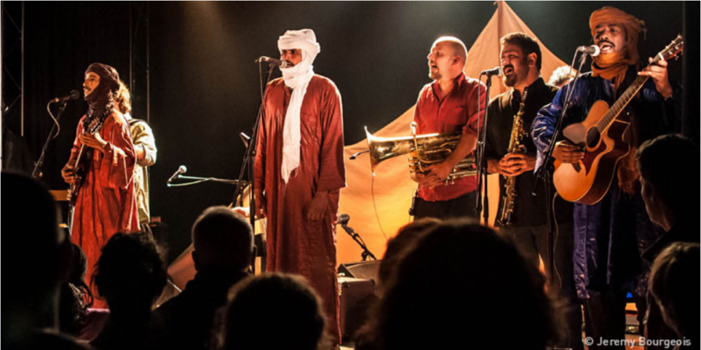 Après la première rencontre, les musiciens Touaregs sont allés plusieurs fois en France, puis les musiciens français ont appris à chanter en touareg, et cette année, tous sont partis pour une grande tournée en Afrique de l’Ouest, par la route, d’un Institut Français à l’autre: Bamako, Ouagadougou, Bobo Dioulasso, Abidjan, … Un voyage que j’imagine épique. Mais je ne vais pas vous en dire plus de leur histoire, ils le font beaucoup mieux eux-mêmes.