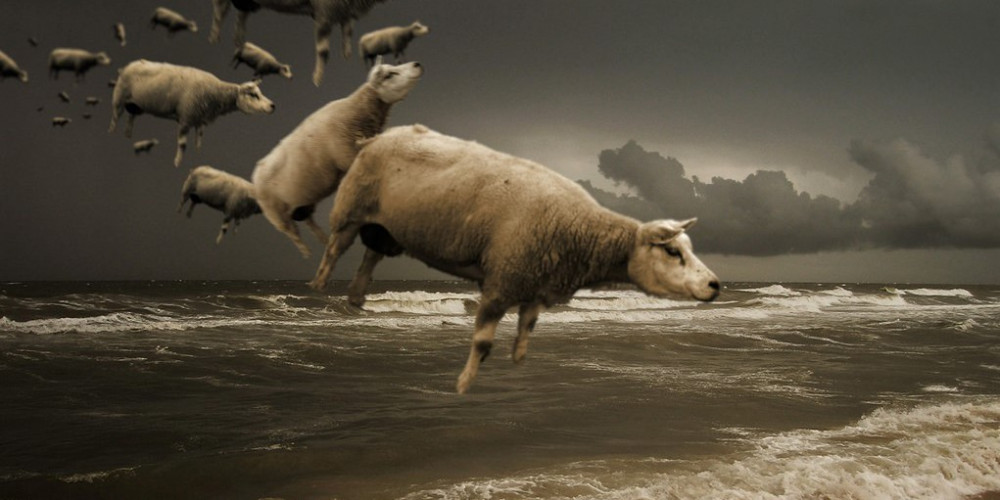 Ces derniers sont peu nombreux à apprécier les courants d’air. En cas de tempête prolongée, ils cessent de brouter et se tiennent en position d’accordéon, la tête rentrée dans les épaules. Une seule catégorie animale semble trouver ces rafales super drôles… La preuve par l’image!