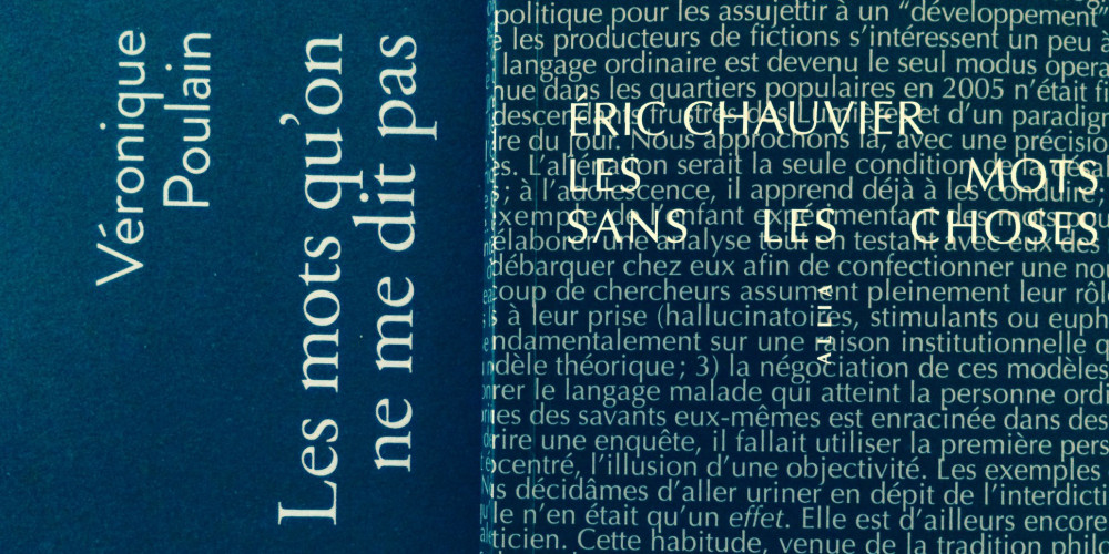 Eric Chauvier poursuit, lui, sa recherche anthropologique sur le quotidien dans un essai, qui vaut acte de résistance à l’air du temps, Les mots sans les choses, qui souligne la vacuité d’un parler contemporain et d’un système de représentations très utile au politique dans lequel un « punk à chien », un « migrant haïtien » ou un « rom » peuvent être « toisés de la même façon » alors que derrière chacun de ces concepts, existent une singularité et le bricolage existentiel et verbal afférent.