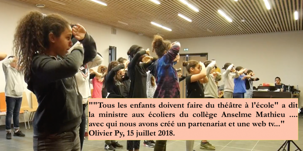 « »Tous les enfants doivent faire du théâtre à l’école » a dit la ministre aux écoliers du collège Anselme Mathieu …. avec qui nous avons créé un partenariat et une web tv… »
