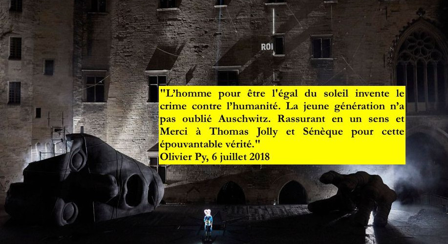 « L’homme pour être l’égal du soleil invente le crime contre l’humanité. La jeune génération n’a pas oublié Auschwitz. Rassurant en un sens et Merci à Thomas Jolly et Sénèque pour cette épouvantable vérité. »