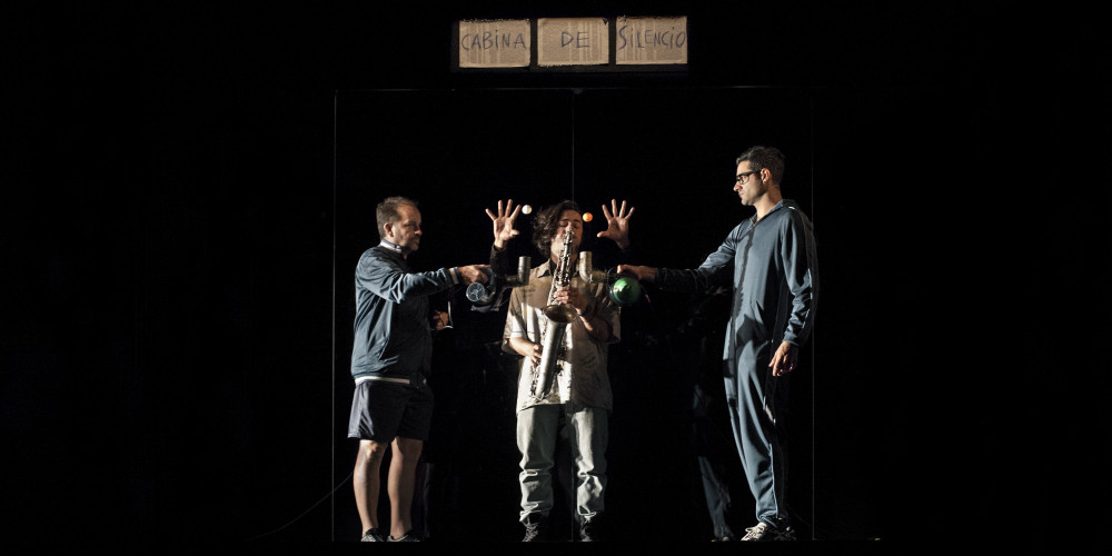 Peut-être après tout que ce spectacle n’existe pas. Nous avons seulement cru y assister. C’est le genre de chose qui arrive dans les rêves… Et dans les récits d’Adolpho Bioy Casares où il n’est pas rare que les héros découvrent que, derrière la trame de la réalité, une autre réalité se dissimule. Un univers parallèle légèrement décalé où les rapports de causalité sont quelque peu confus et dont la relation improbable avec le notre induit un sentiment de possibilités infinies mais aussi de menace et finalement de chaos angoissant. Des officiants circulent dans la salle avec à la main des liasses de papiers qu’ils distribuent au public. Ces feuilles criblées d’inscriptions censées nous éclairer ne font en fin de compte qu’entretenir un peu plus la confusion tout évoquant de possibles explications à venir. Il y a aussi ces lettres inscrites sur les balles de ping-pong, A, M, R, T, qui invitent à décrypter un message. En particulier le mot « trama », qui n’apporte pas grand-chose sinon l’idée que quelque intrigue se trame.
