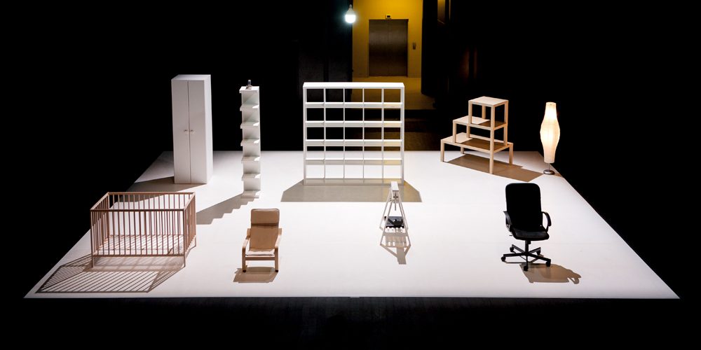 En prenant pour point de départ un catalogue de vente de meubles, les deux artistes poussent jusqu’à l’absurde et au fantastique le projet de vie qui se profile derrière le mode d’emploi proposé au client potentiel d’un monde idéalisé où le bonheur semble à portée d’étagère. Un spectacle aussi drôle et fou que d’une extraordinaire plasticité.