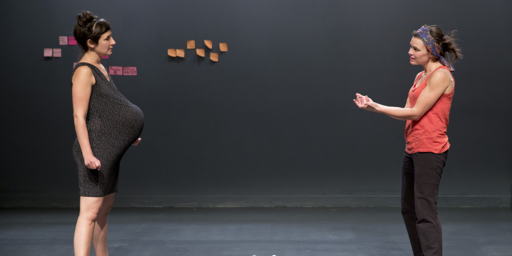 « C’est une sorte de pièce-manifeste, concède Claire Frétel, à la mise en scène, on a eu envie de ruer dans les brancards du « maternellement correct ». Il ne s’agit pas de se venger mais de prendre la parole sur un sujet qui reste curieusement un peu tabou. » La parole est crue, comme dans une autofiction, une autodérision. Mais de qui se vengeraient-elles? Des mecs? Non, même si les nouveaux pères ne prennent pas encore bien, voire toujours pas du tout, la mesure de la tempête que représente la maternité dans le corps, l’âme et l’emploi du temps d’une femme. Les filles en prennent aussi dans la tête et dans le ventre: jalousie, incompréhension, voire négation, apparemment il ne faudrait pas croire à ce que l’on pourrait imaginer être une complicité de genre. Astucieux effets de l’écriture et de la mise en scène : sur le plateau les deux comédiennes s’échangent les rôles: les gentilles, les méchantes, les indifférentes.