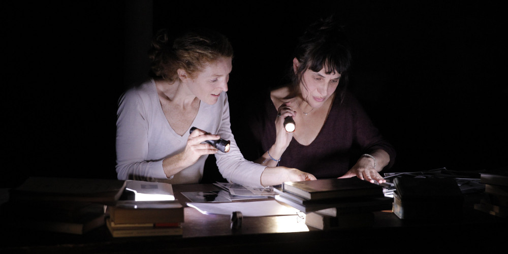 De fait dans la version resserrée de ce spectacle que présente aujourd’hui Isabelle Lafon, on sent d’emblée un parfum de clandestinité. Assises autour d’une table où trônent quelques piles de livres, Johanna Kortals Altes et Isabelle Lafon dans les rôles respectifs de Lydia Tchoukovskaïa et d’Anna Akhmatova s’éclairent avec des lampes de poches. Dans cette semi-pénombre où la poétesse jette de temps à autre derrière elle des regards inquiets comme si elle se sentait épiée, chacune de ses phrases a quelque chose de lumineux.