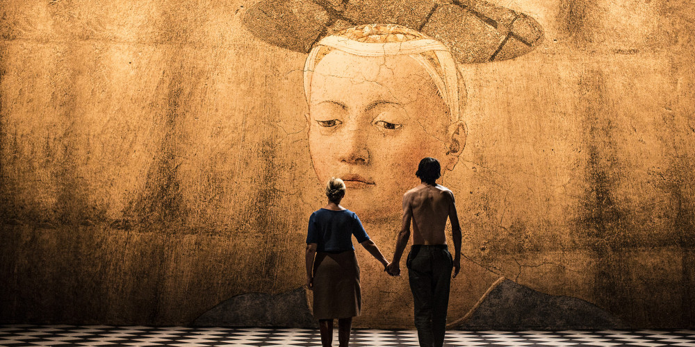 Intitulée Larissa, prénom de l’épouse du cinéaste, Larissa Egorkina, la dernière partie du spectacle s’articule autour du visage de la Madonna del Parto de Piero della Francesca. Stanislas Nordey et Hélène Alexandridis s’interrogent face à ce visage doucement rayonnant dont les traits de plus en plus vivants se précisent peu à peu en fonction de l’éclairage. Ils entament un dialogue avec la Madone; d’autant plus touchant qu’ils inventent les réponses. Faire parler une icône est bien dans la veine de Tarkovski.